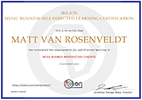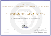 There is a great need for everyone to have a common groundwork of knowledge about the business of music, as well as the copyright and creative industries, in general. On this page you can learn the basics and take an exam to test your knowledge and, if you wish, get the Ibilion Music Business Self-Directed Learning Certification.